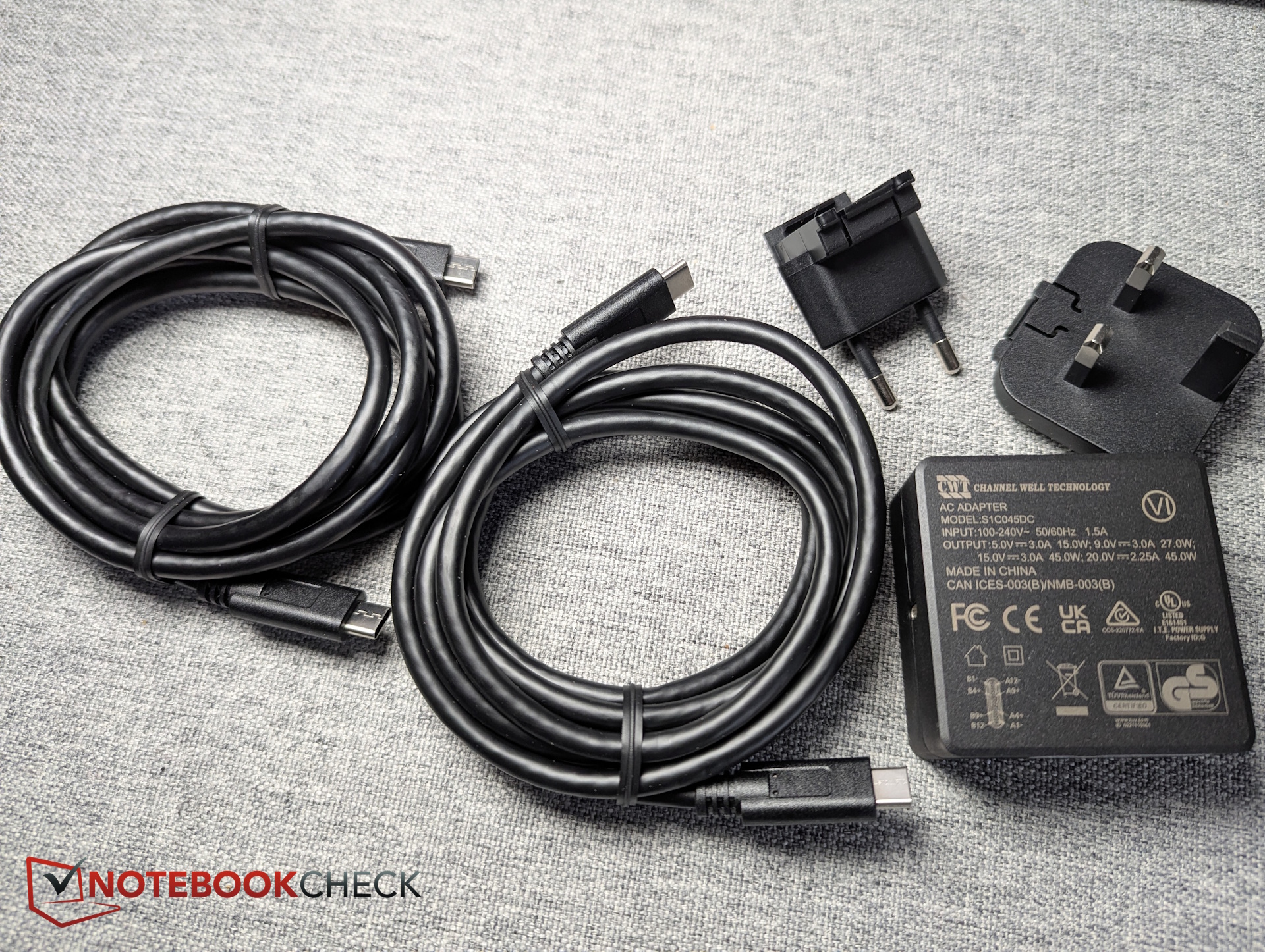 Box contents – USB-C cable and power adapter