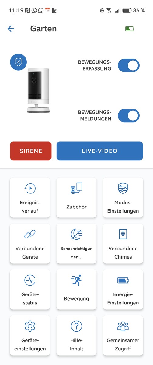 As with almost all Ring products, setup is straightforward. The camera is connected via Wi-Fi (2.4 or 5 GHz) using the Ring app (iOS and Android). The app guides you through the process step by step: scan the QR code on the back, select Wi-Fi, briefly connect the camera to the power supply - done.