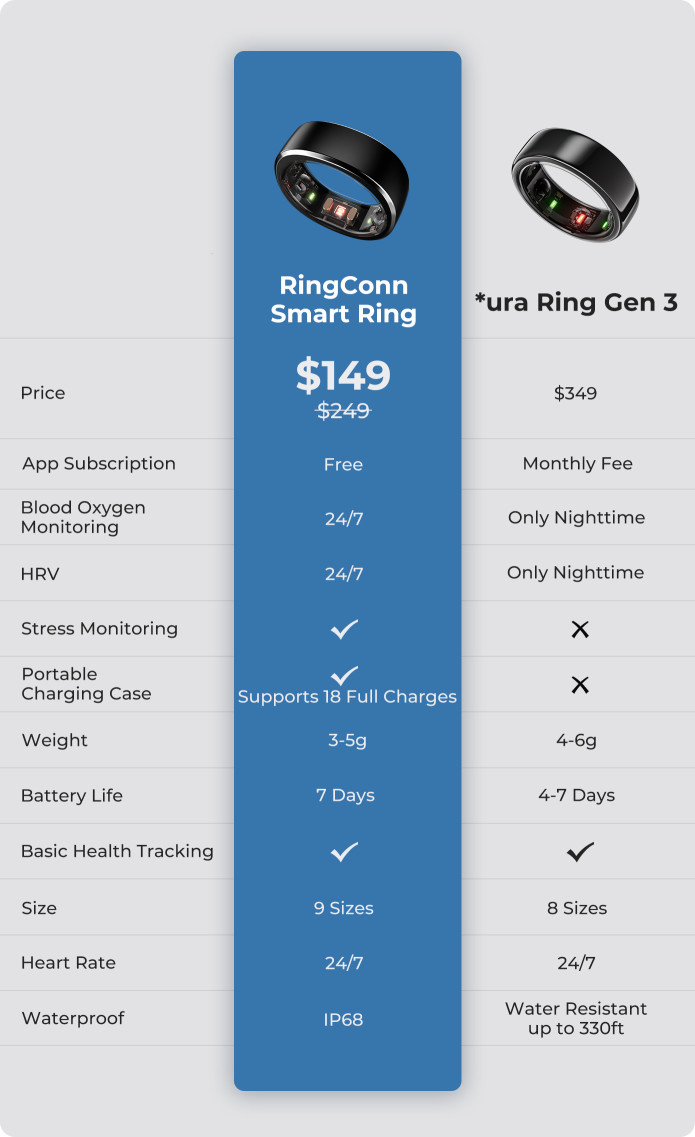 The RingConn starts at US$149 on Indiegogo, although the company stresses that the Smart Ring will eventually rise to US$249 after the crowdfunding campaign ends. Additionally, each RingConn comes with a lifetime subscription service unlike the Ring 3, for which Oura charges a monthly fee. As the screenshot below boasts, the RingConn also offers 24/7 blood oxygen, heart rate, HRV and stress-level monitoring, along with ‘basic health tracking’.
