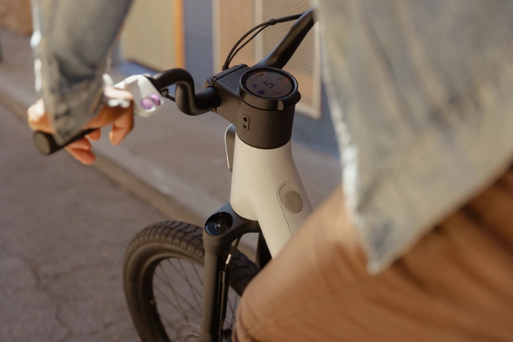 The battery can be removed and fully charged in 2 hours and 20 minutes with up to 240 watts via USB-C, eliminating the need to carry a bulky, proprietary power adapter. Two USB-C ports also allow the battery to be used as a giant power bank with a capacity of 538 Wh or 808 Wh, depending on the model. A small E Ink display directly on the battery shows the charge level. The e-bike itself has a round 5-inch touchscreen on the handlebars, which is used to control functions such as motor power, but can also display ongoing navigation or control music playback from a connected smartphone.