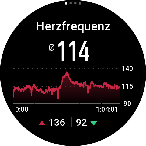 In terms of heart rate, the smartwatch competes with a Polar H120 chest strap, with whose measurements it largely matches as reference values. The results for the resting heart rate were completely consistent. There were larger discrepancies in the medium heart rate. The measurements here were up to 10 beats below the reference. This leads to an overall deviation of 2.6 percent, which is also reflected in the dynamic curve.