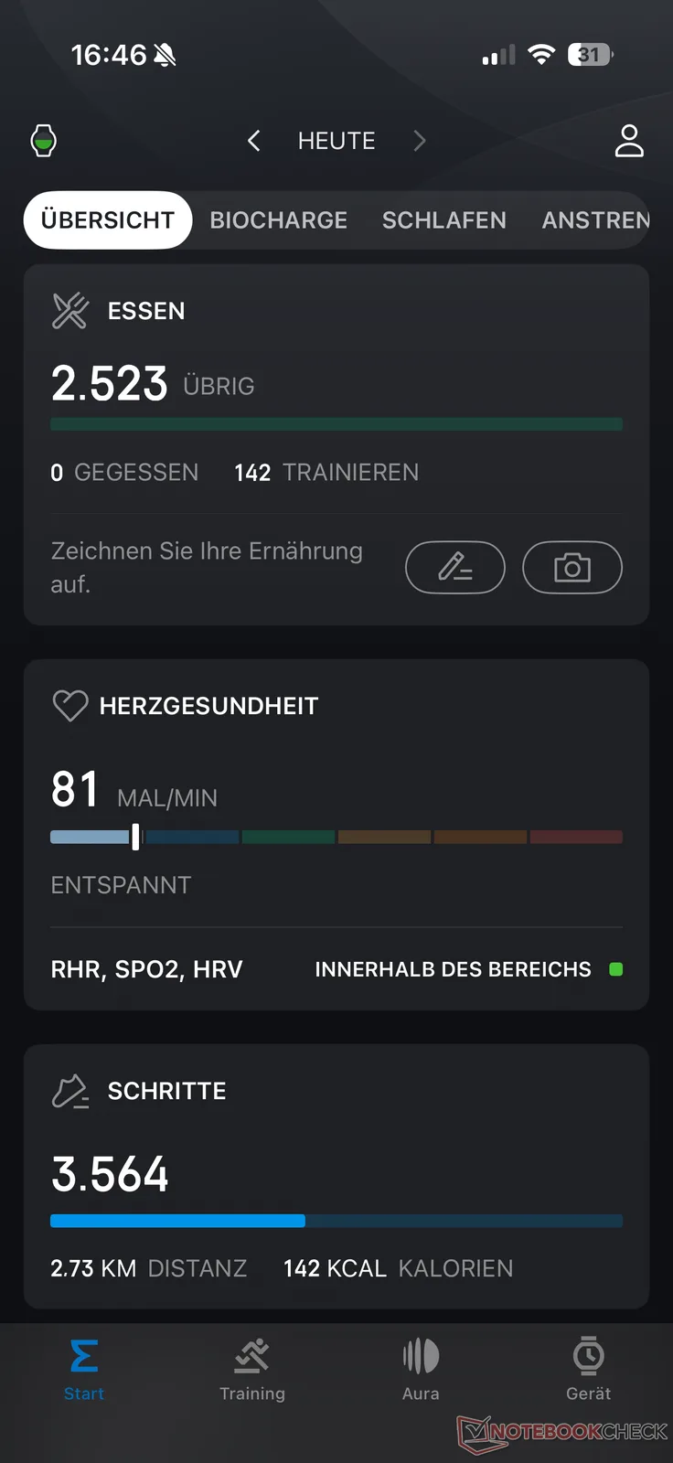 The focus of the Zepp app is the BioCharge level. This is intended to provide an insight into the wearer's daily performance and takes into account sleep quality and stress, among other things. Data can be synchronized with third-party apps such as Google Fit, Apple Health, Strava, adidas Running and more.