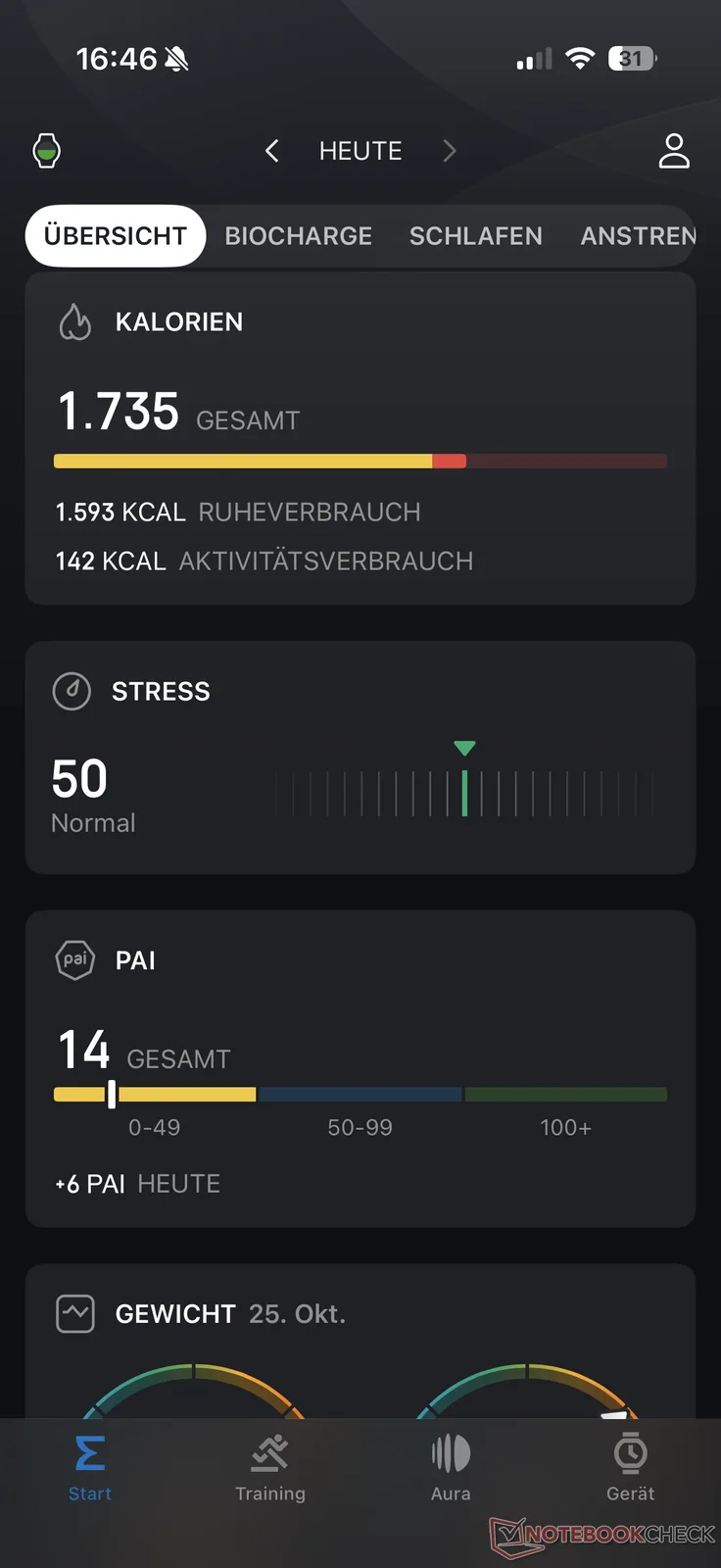 There is also the so-called PAI value. This is an evaluation of physiological activity based on heart rate data, among other things. The value provides an overview of the activities of the last 7 days and, according to the manufacturer, should ideally be above 100 points.