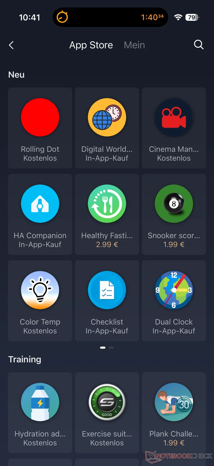 Various settings relating to health monitoring, notifications and device settings can be made via the Zepp app. In addition to a large selection of free and paid watch faces, it also has its own app store. This can be used to install additional (sometimes paid) apps on the smartwatch to expand it with additional functions.