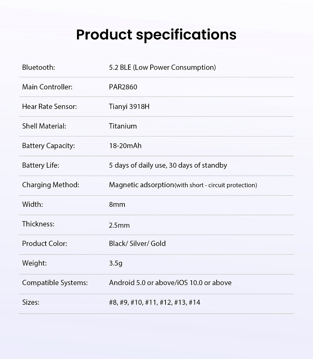 On-paper battery performance is also respectable, with about five days of active use and up to 30 days on standby claimed by the manufacturer. Charging is handled via magnetic adsorption with short-circuit protection. For a ring this compact, that’s comparable to the RingConn Gen 2, though slightly behind Oura’s seven-day rating. The SR16 also comes with gesture controls, letting users take photos or navigate between music and short videos. It’s available in black, silver, and gold, across seven ring sizes (8–14).