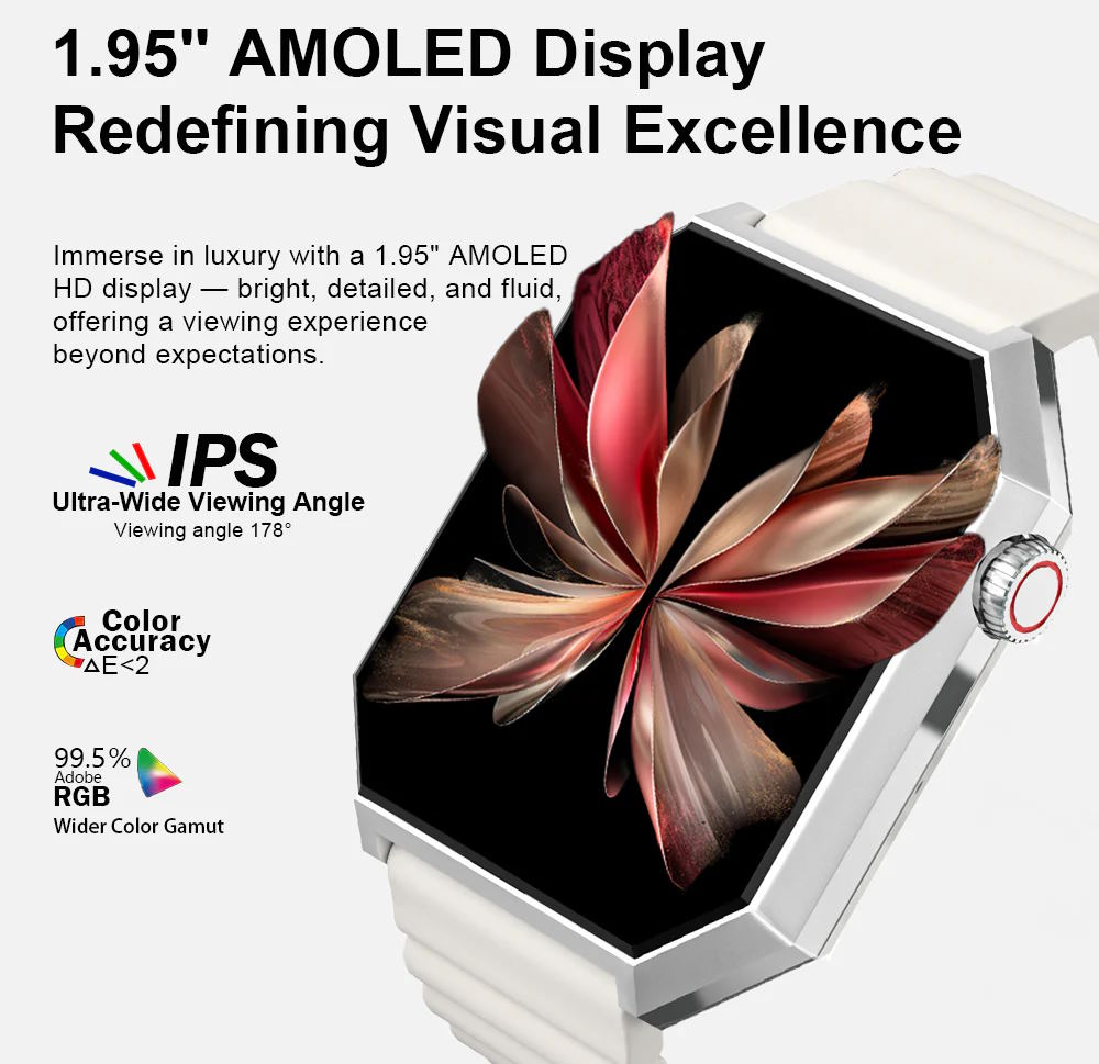The watch features a 1.95-inch AMOLED screen with a resolution of 460 x 460 pixels. Rollme specifies a color deviation of Delta E < 2, but there’s no official info regarding the brightness, which is probably more relevant for a wearable like this one. Either way, the watch is 10.5mm thick and 40mm wide, while the 380mAh is supposed to last up to 10 days on a full charge. The Edge further offers the usual features and can display notifications and show weather info, for instance.