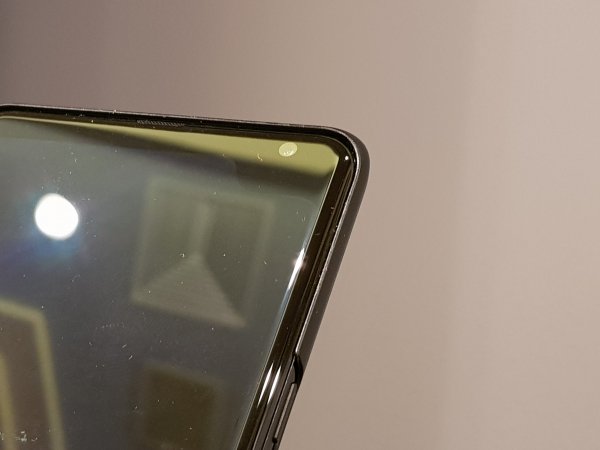 Samsung is yet to officially jump on the notch bandwagon, but the 5G prototype suggests that the company may be toying with the idea. The display has an asymmetrical, or dog-eared, notch in its upper right-hand corner that contains what looks like a small front-facing camera. We doubt that this is an early look at the Galaxy S10, although its rear-facing cameras are reminiscent of the Note 9.