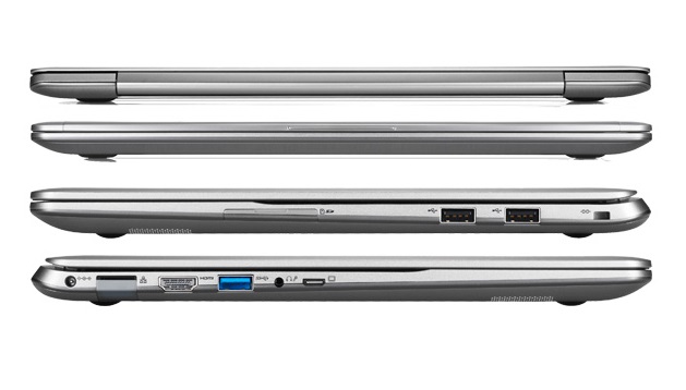 The Samsung Ativ Book 7 is generally seen as an affordable alternative to the top of the line Samsung Ultrabook Ativ Book 9. Its look and especially hardware are somewhat outdated. With brushed silver aluminum and glossy black bezel, its design resembles the standard slim ultrabook fare of the past few years. Unfortunately it has an inescapably plastic feel. The keyboard is especially cheap feeling, and the typing experience leaves much to be desired. It also only features one USB 3.0 port, which is disappointing. Interestingly, it features two video outputs which is a thoughtful touch that will appeal to some.