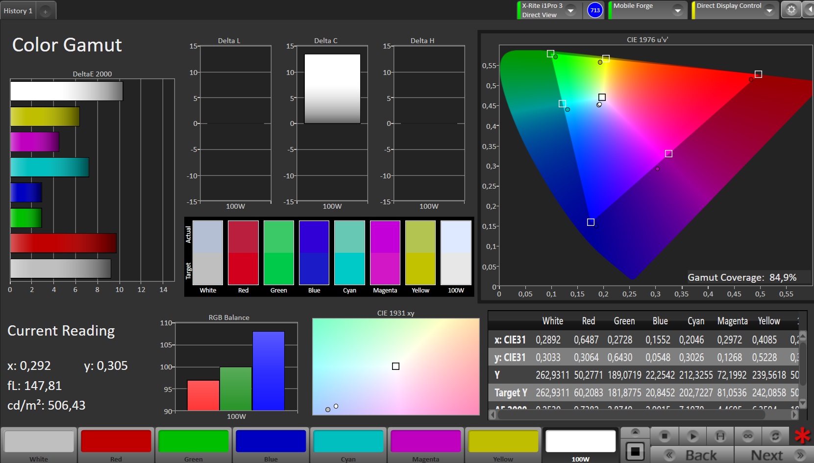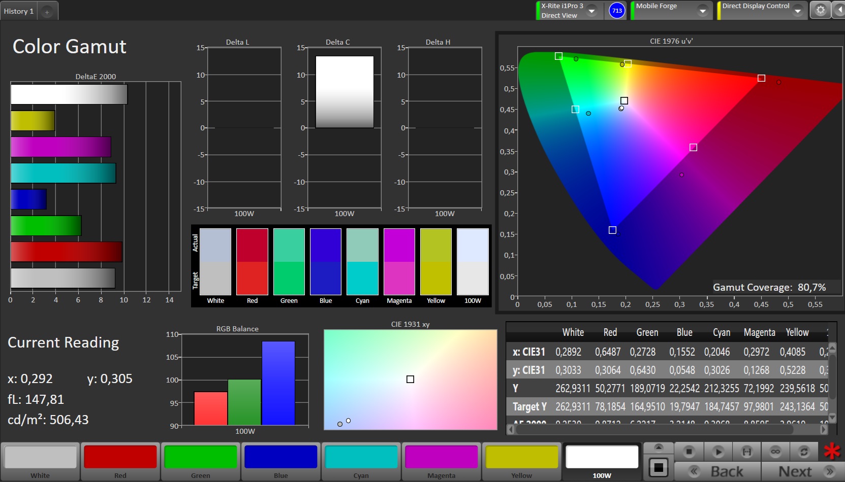 | Contrast (:1) | 1444 | 1640 14% | 1567 9% | 1291 -11% | ||