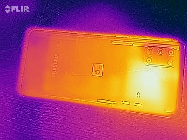 According to our measurements, the Samsung Galaxy A31 heats up to 44.5 °C (~112 °F) under load. Although it feels warm, it doesn't get hot. The GFXBench endurance tests also show that users don't have to expect performance limitations even under prolonged load.