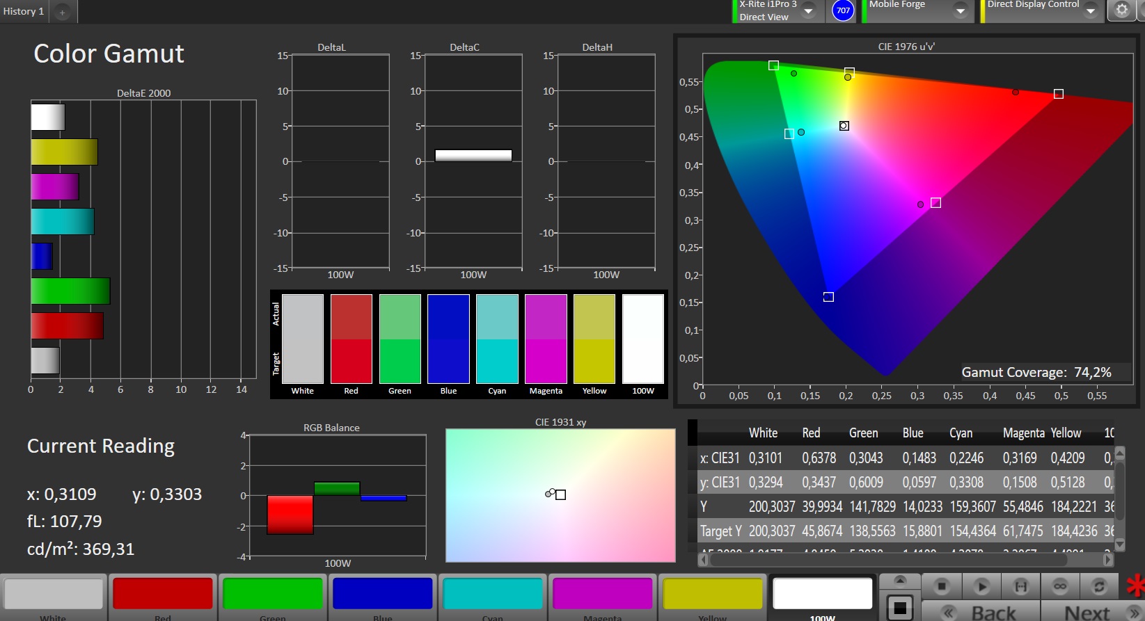 | Colorchecker dE 2000 max. * | 4.21 | 5.69 -35% | 2 52% | 5.9 -40% | 1.9 55% |