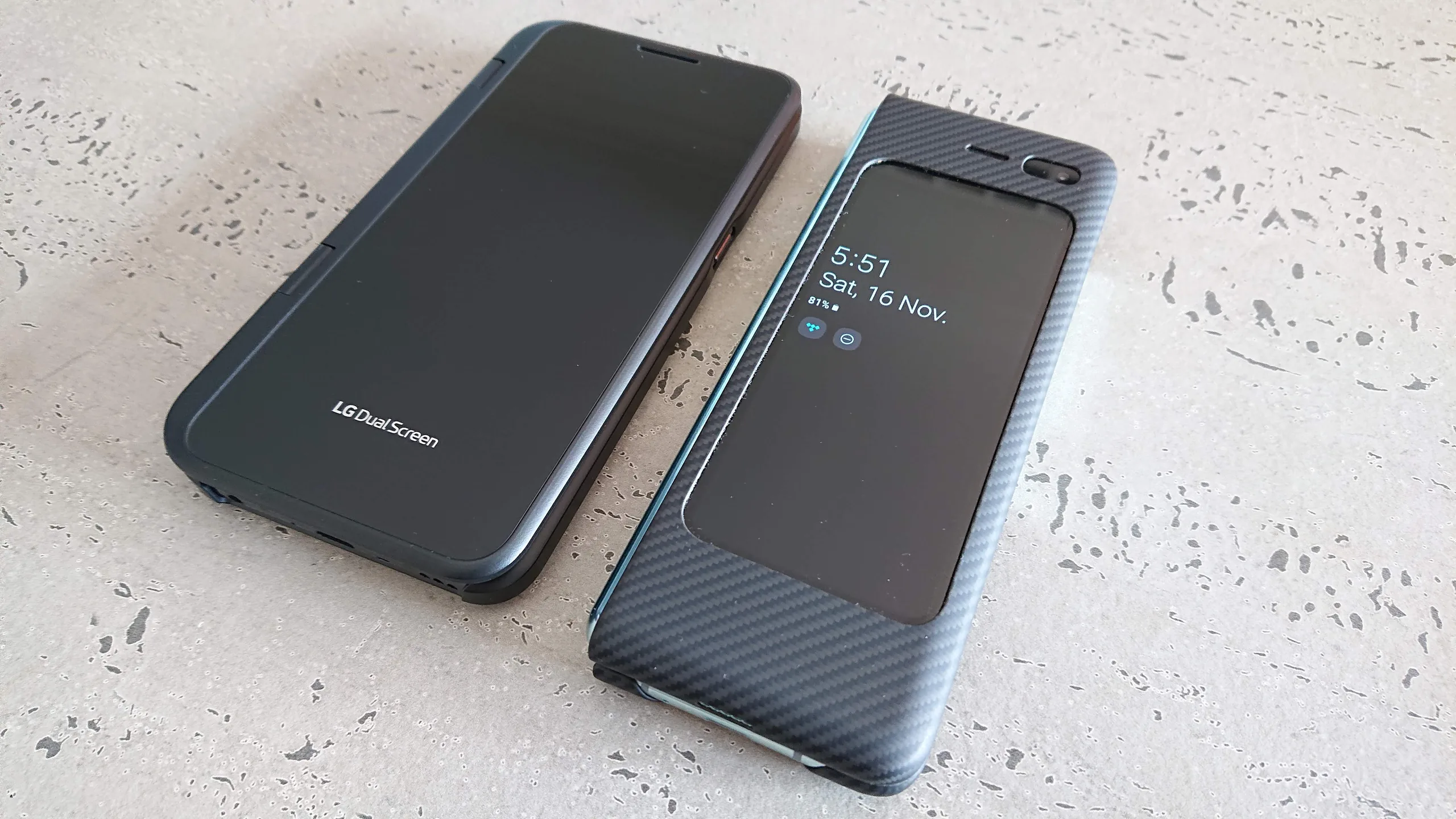 In the case of the V50, the second screen accessory can be removed allowing you to use the V50 as a regular smartphone whenever you choose. This makes it particularly versatile. On the other hand, switching between using the case/phone combo and regular use could start to get old. This is obviously not an issue for the Fold as you are locked into its approach for better or worse. However, it will constantly have a weight penalty -- it really does feel every bit like what a folded tablet of its size would feel in the hand or in pocket when in phone mode.