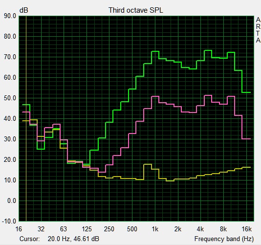 (±) | linearity of bass is average (9.3% delta to prev. frequency)