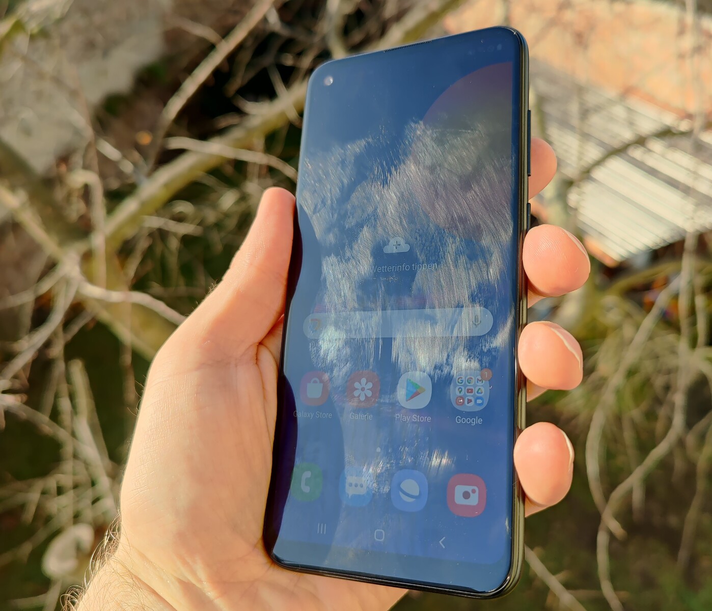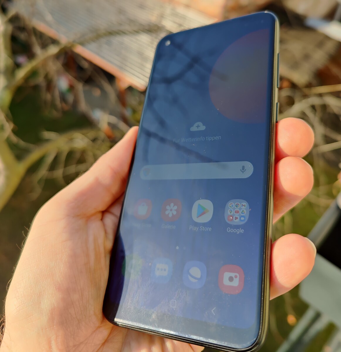 The illumination of the PLS panel is even, and the often occurring shadowing of LC displays with punch-hole design in the area of the front camera is very slightly visible in Samsung's phone.
