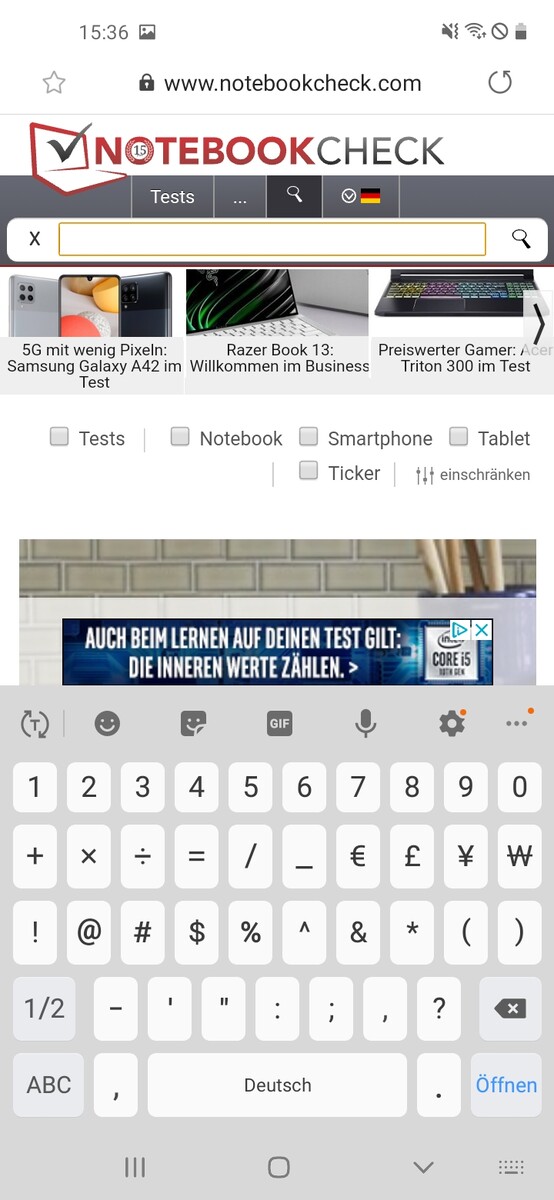 The inputs on the 6.4-inch LC display are implemented accurately and quickly up to the touchscreen's corners. The low-priced Samsung phone does not offer a refresh rate beyond 60 Hz.