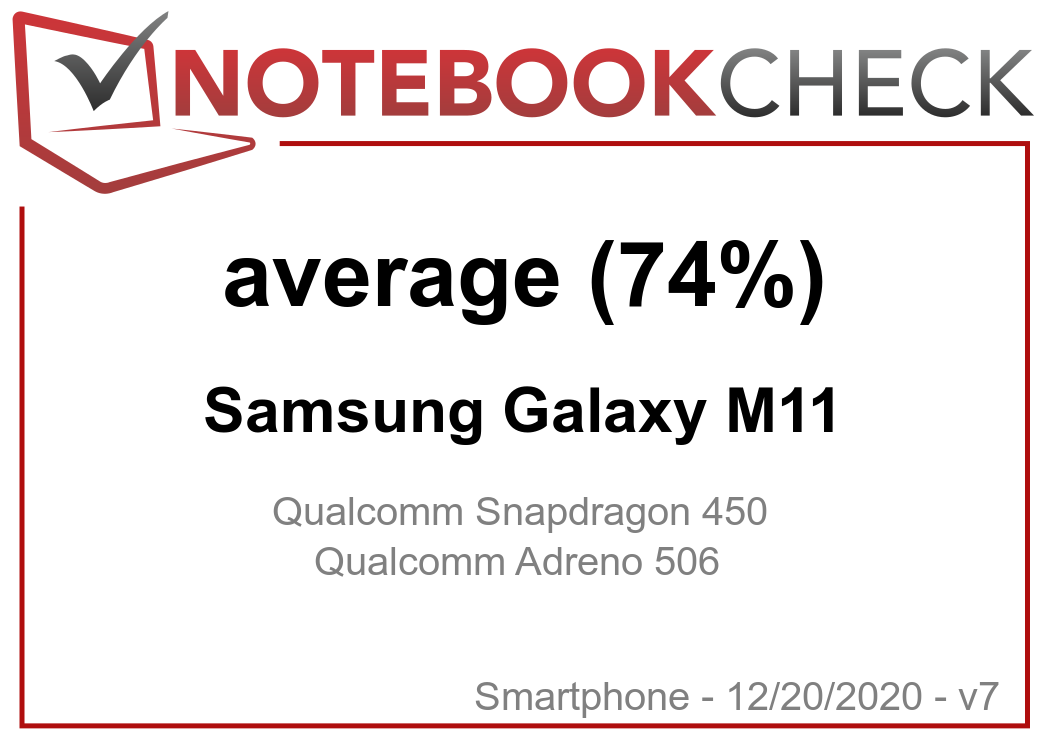 | 74.4 % v7 (old) | 12 / 2020 | Samsung Galaxy M11 SD 450, Adreno 506 | 197 g | 32 GB eMMC Flash | 6.40" | 1560x720 | |