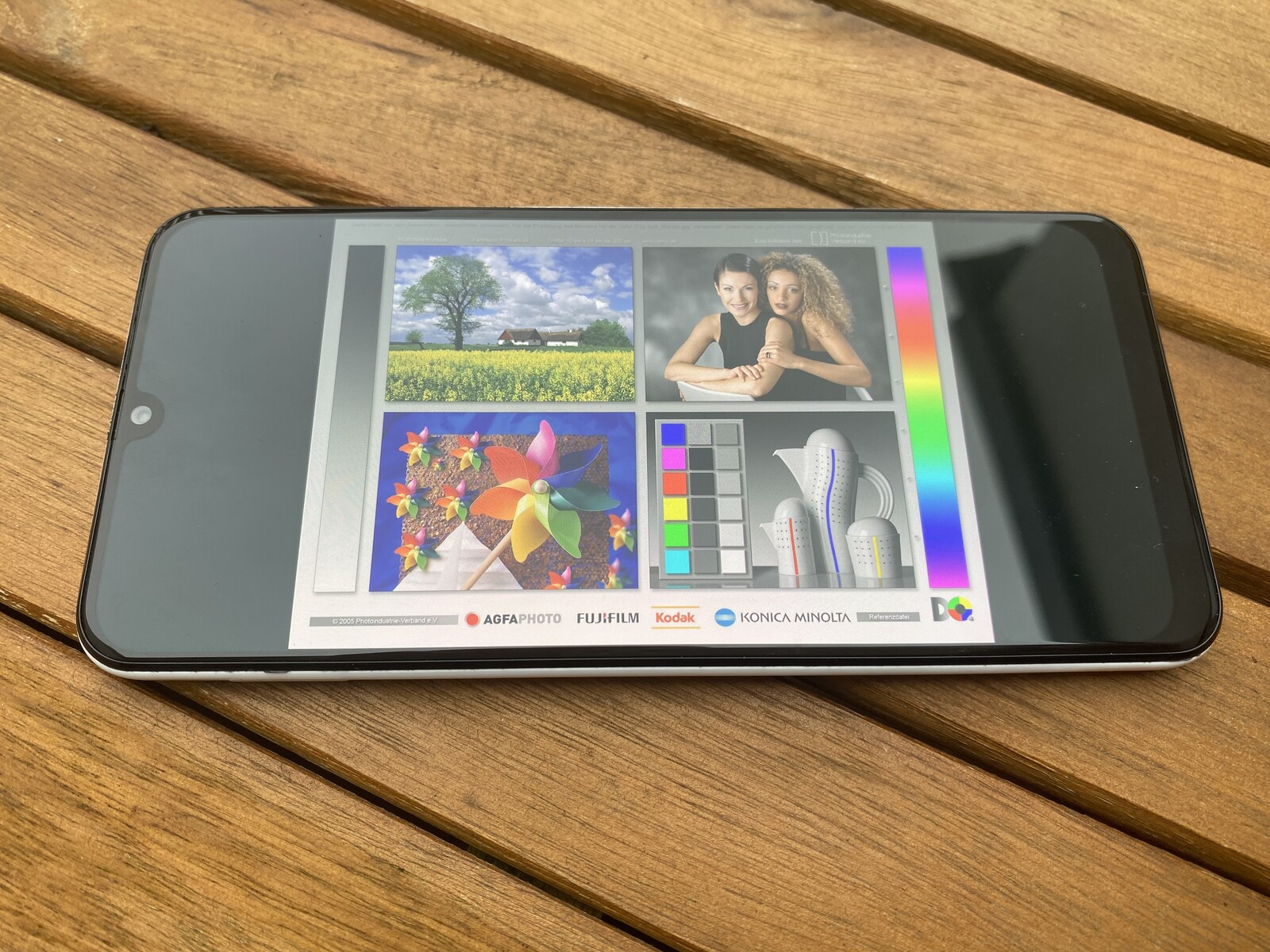 We also subjected our review unit to further camera tests under controlled lighting conditions. We encountered surprisingly large colour deviations here, with the main camera reproducing yellow tones more accurately than other colours. Our test chart looks sharp and vibrant too, with black text on coloured backgrounds being easy to read. Colour transitions are reasonably even as well, while there is only a slight drop in contrast towards the top corner of the image. Predictably, the sensor has a harder time reproducing our chart at 1 lux than it does under controlled lighting conditions.