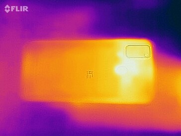 (+) The maximum temperature on the upper side is 36 °C / 97 F, compared to the average of 35.2 °C / 95 F, ranging from 21.9 to 247 °C for the class Smartphone.