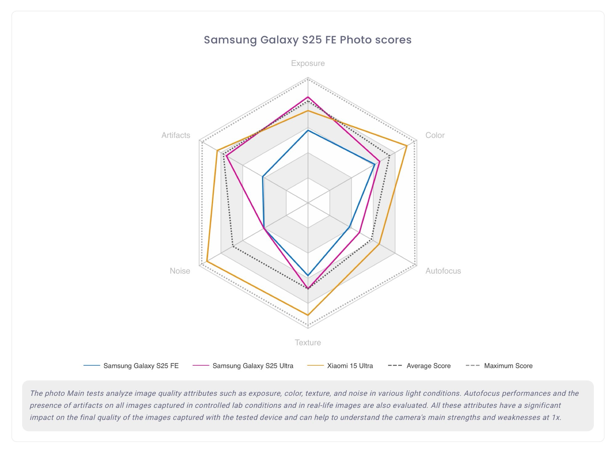 The Galaxy S25 FE includes a 50 MP f/1.8 main shooter with a 1/1.57-inch sensor, a 12 MP f/2.2 ultrawide camera with a tiny 1/3-inch sensor, and an 8 MP f/2.2 telephoto camera with an even smaller 1/4.4-inch sensor and 3x optical zoom. DxOMark’s in-depth camera analysis has now revealed the actual extent of the compromises in this triple-camera setup. With a score of 118, the Galaxy S25 FE is placed 123rd in the global rankings – outperformed by even the five-year-old Apple iPhone 12 Pro Max (131 points) and the more affordable Google Pixel 6a (122 points).