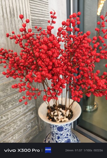 Accurately rendering the vase with red artificial berries (visible in the first few photos) poses a slight challenge for all devices. It is worth noting that Vivo’s bright and overexposed image is likely far from accurate and also appears blurry in certain areas. We personally prefer the Galaxy S25 Ultra’s rendition the most.