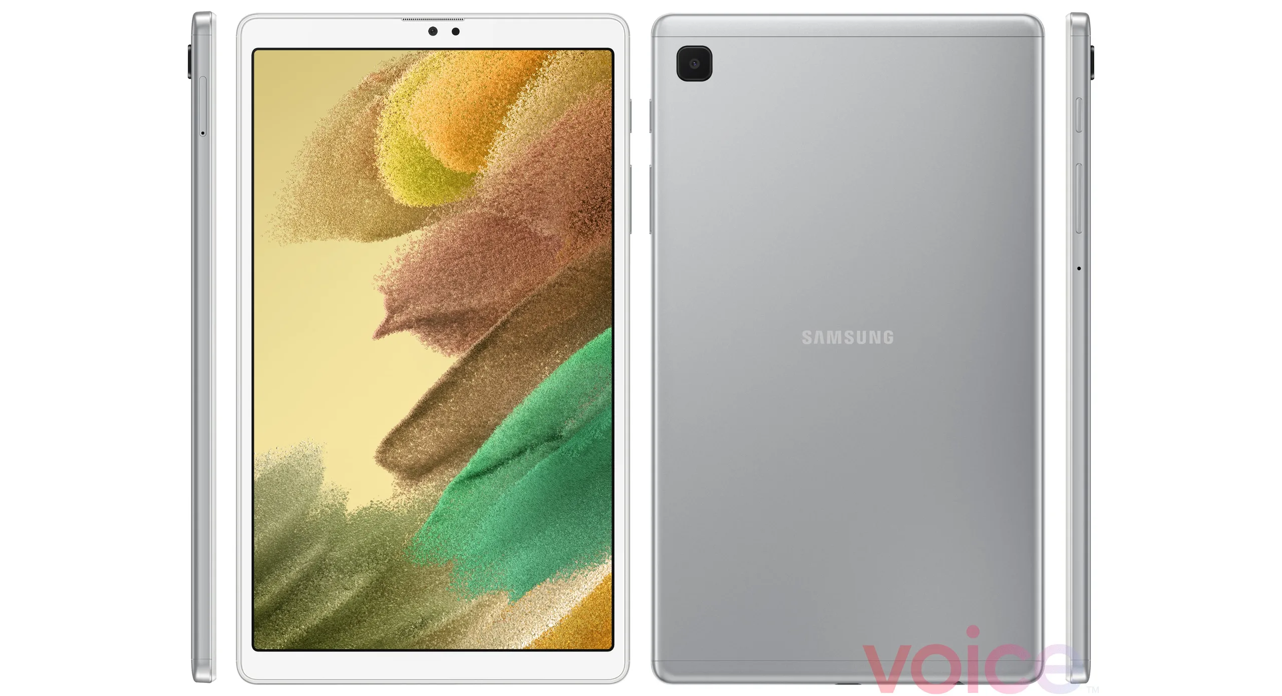 These images, posted to Voice by Evan Blass, purport to show the Tab A7 Lite in silver, whereas it has allegedly leaked in a more Space Gray-like shade up until now. The renders indicate that Samsung will pair this case option to a white front panel, as opposed to black in the putative darker option.