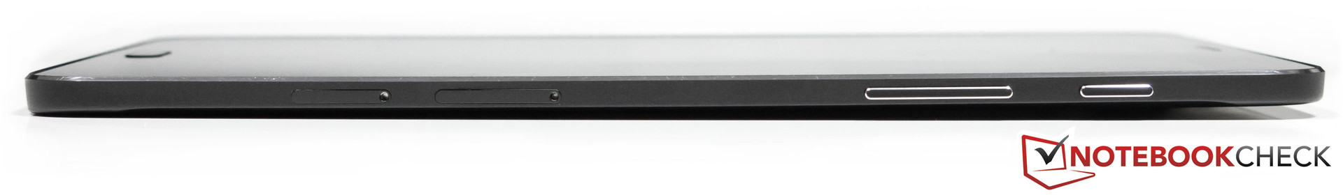 Like the Galaxy Tab S2 9.7, the touchscreen of the Galaxy Tab S2 8.0 convinces with a high precision even with very light touches. The good gliding capabilities of the glass surface only create minimal friction for the fingers. While we praised the build quality of the buttons during the review of the larger sibling, both the volume rocker as well as the power button of our review unit leave a slightly wobbly impression. However, this does not affect the well-defined pressure points.
