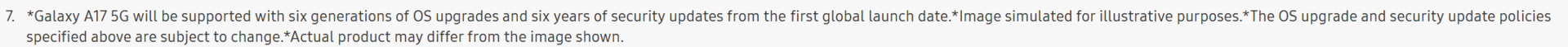 But then we read more closely on Samsung's website, where we found two limitations to this promise: the addition of "up to" and the sentence: "The OS upgrade and security update policies specified above are subject to change".