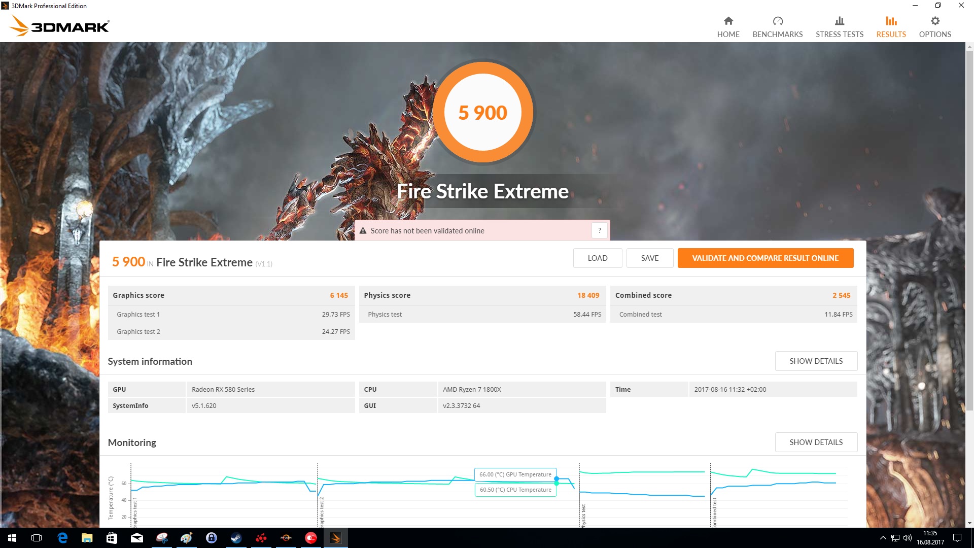 In the synthetic benchmarks, the Sapphire Nitro+ Radeon RX 580 is able to place ahead of the AMD Radeon RX 480, sometimes by up to 20%. However, compared to the Nvidia competitor, the Sapphire Nitro+ Radeon RX 580 remains clearly behind the Nvidia GeForce GTX 1070. Our test sample can only hold up against the slightly slower GeForce GTX 1060 here.