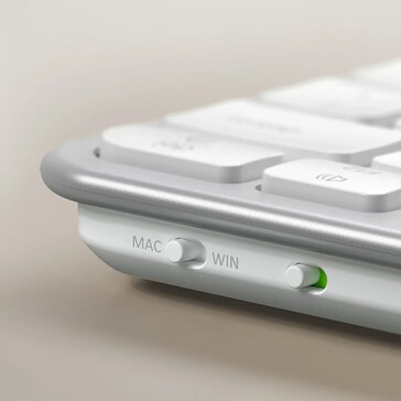 The same applies to the new EX1 and EX3 keyboards, which mainly differ in the fact that the EX3 sports a numeric keypad and full-size arrow keys. The battery is located under a cover that is secured to the chassis with just one screw and can therefore be replaced within a few minutes. Satechi advertises a battery life of "several weeks", although the keyboard does not have a backlight. The ultra-thin membrane keyboard is aimed at users who are accustomed to laptop keyboards, up to four devices can be paired via Bluetooth or a USB-C dongle. Meanwhile, a slider on the back switches between a Windows and macOS key layout.