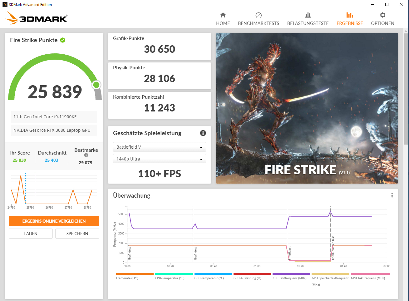 The review sample provided to us is very good thanks to the combination of the Core-i9-11900K processor, GeForce RTX-3080 laptop GPU, 64 GB working memory (max. 128 GB) and 4 NVMe SSDs with a total of 26 TB storage space, the test device provided to us is more than equipped for all common application areas. Office, Internet, video editing, image processing, streaming and gaming are all handled without any problems.