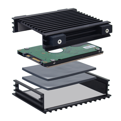 Called the Himuro Mini HDD Cooler, the aluminum heatsink container can hold a regular 2.5-inch drive with thermal conductive sheets for installation on a 3.5-inch bay. The cooler is compatible with parallel and SATA 2.5-inch drives of up to 14.8mm thick. Overall, the dimensions of the fanless cooler come out to be 101.5x113x25mm.