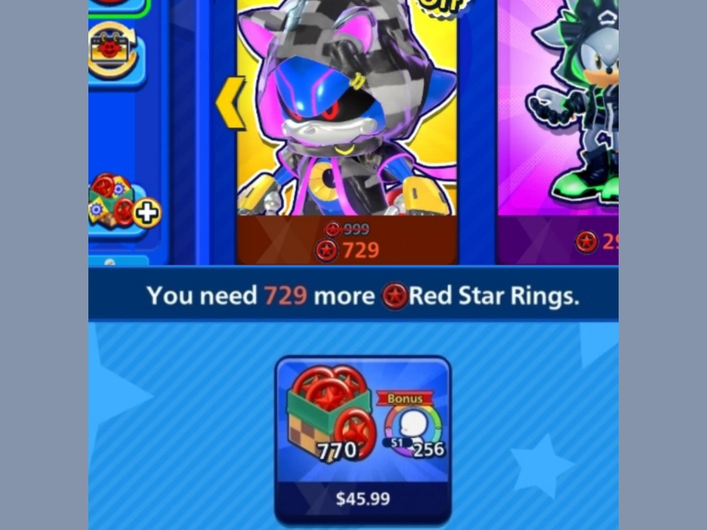 Players complain that Sega is engaging in “aggressive” monetization practices. Across all platforms, players report multiple overlays and pop-ups urging players to purchase skins. The skins in question are pretty expensive, ranging from $40 to $60. For example, the Neon Suit Sonic sells for 999 Red Star Rings, which is over $50. Individual emotes in Sonic Rumble cost 99 Red Star Rings, which equate to over $10.