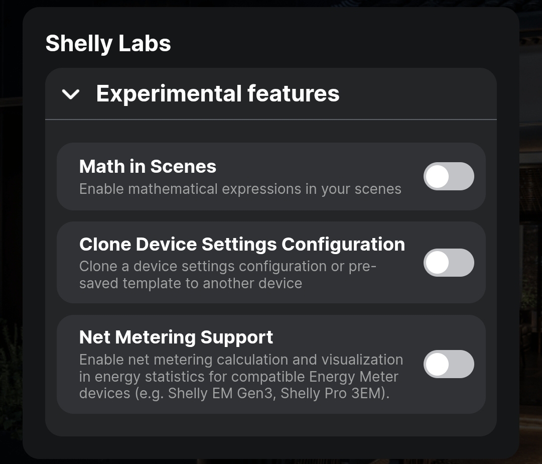 Firstly, in version 3.69.0, there is a new Energy Net Metering tool for Energy Meter (EM) Shelly devices like the Shelly EM Gen3 and the Shelly Pro 3EM (120A version curr. $128.99 at Amazon). This allows users to check their net metering, when unused energy is sent to the local grid. Enabled via User Settings > Shelly Labs, the tool could help you understand the balance between your energy generation and consumption.