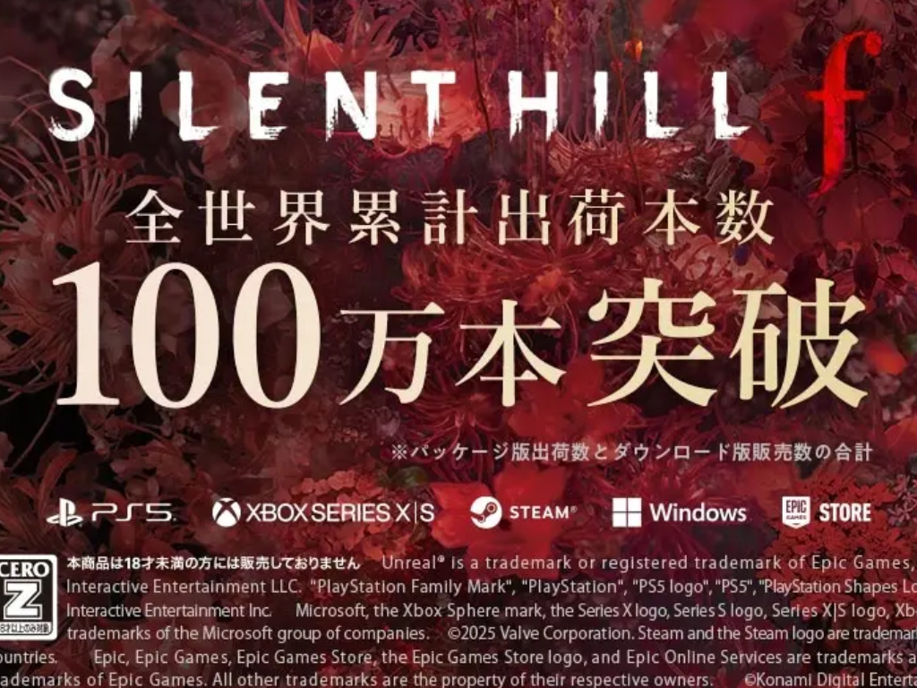 Konami has announced that its latest standalone entry in the Silent Hill franchise, Silent Hill f, has sold over 1 million copies across physical and digital platforms in just one day, following its September 25, 2025, launch.
