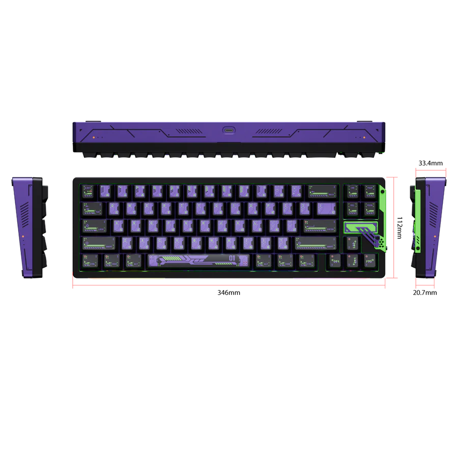 In terms of visuals, while the south-facing RGB might be a let-down for fans of shine-through keycaps, the Slice68 HE also offers a customisable RGB strip along the front edge of the keyboard, somewhat in keeping with the Evangelion theme.