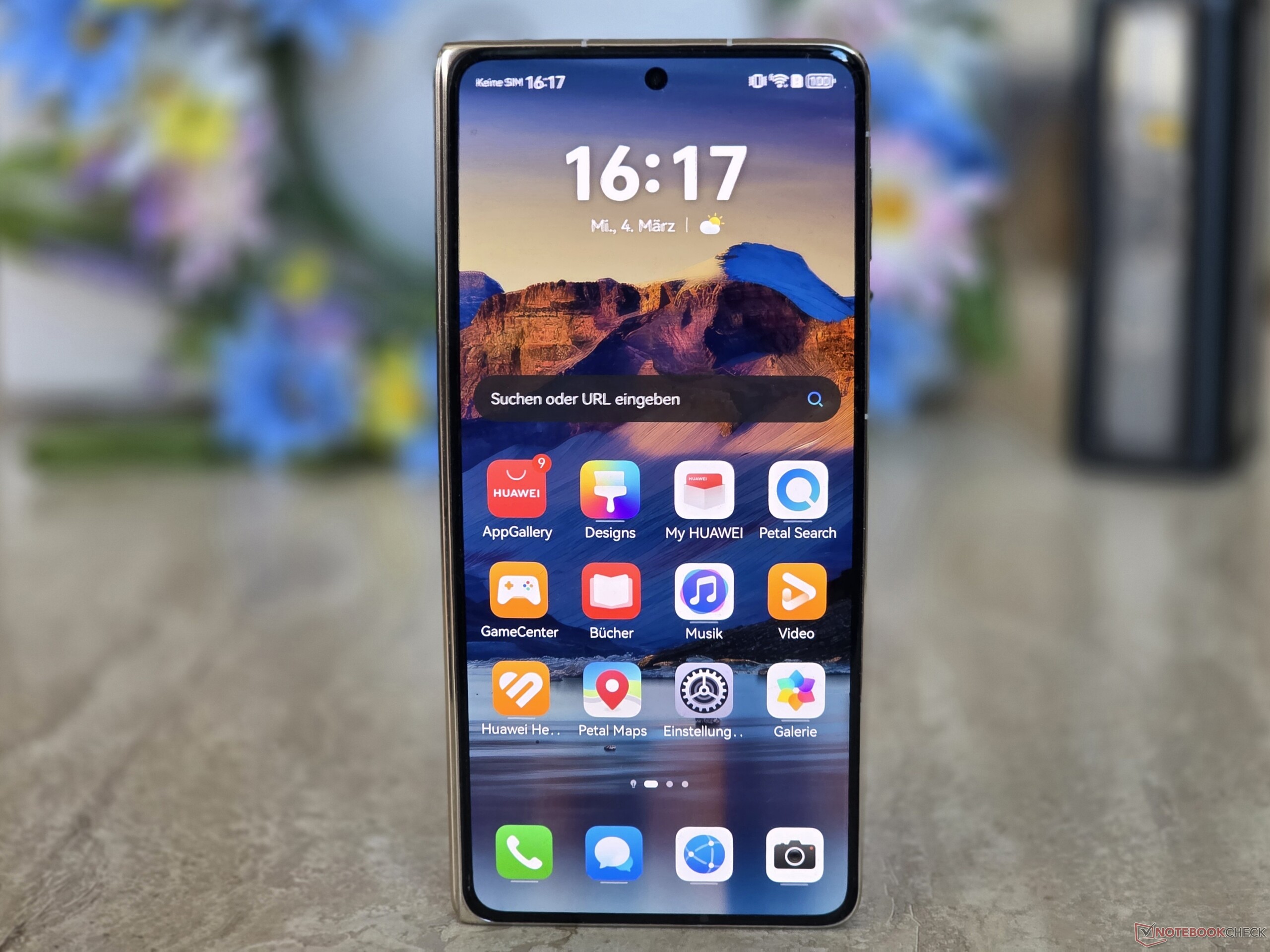 The chassis not only feels premium, but is also IP59-certified and therefore water-resistant. The crease is by no means pronounced, but it is clearly noticeable. Given the approaching wave of crease-free competitors waiting in the wings, Huawei is no longer state of the art in this respect for 2026 either.