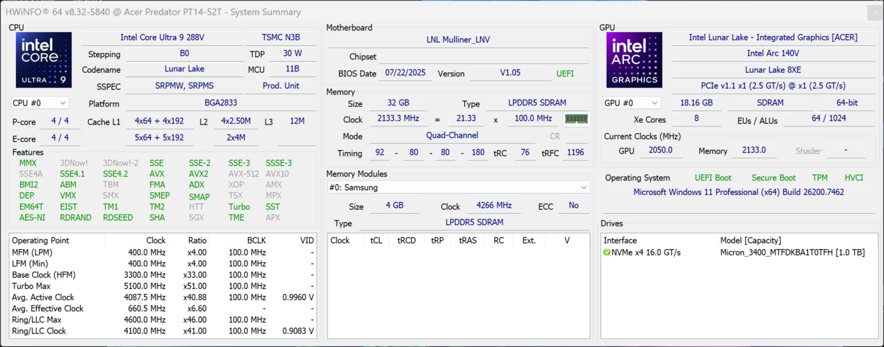 | Acer Predator Triton 14 AI PT14-52 (Angelbird AV Pro V60) | |