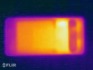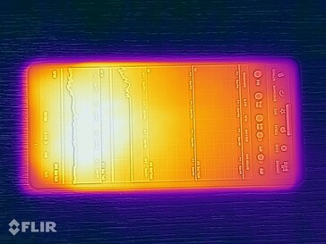 (+) In idle usage, the average temperature for the upper side is 28.9 °C / 84 F, compared to the device average of 32.9 °C / 91 F.