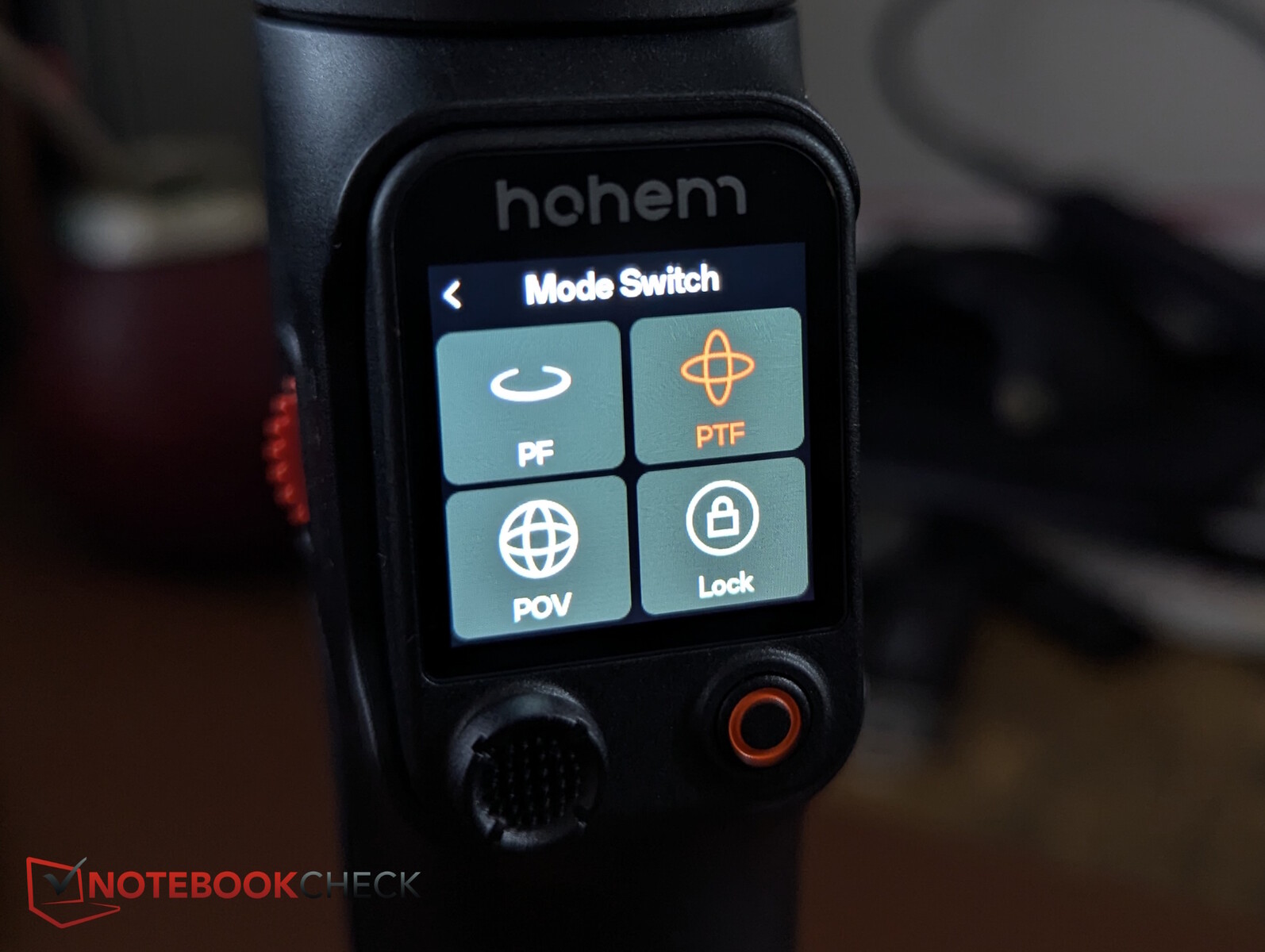 Time for some test shots. Using the remote, you can choose between different axis modes, allowing horizontal pans but restricting vertical tilt, or lock the gimbal onto a fixed subject so it stays centered even as you move the handle. A small LED on the camera/light module indicates tracking status (green = active, red = inactive).