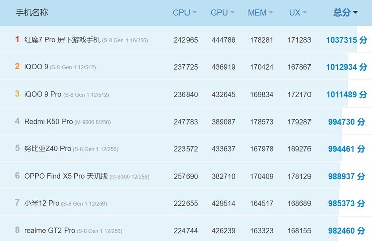 Much has been said about how the MediaTek Dimensity 9000 betters the Snapdragon 8 Gen 1—at least in the CPU department. Overall, though, it appears that the Snapdragon 8 Gen 1 still tops AnTuTu's performance charts in China, despite stellar performances from the Dimensity 9000-powered Redmi K50 Pro and OPPO Find X5 Pro.