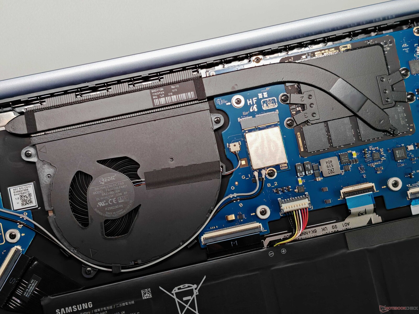 The screen is a very simple IPS display, but it does not require much power. Depending on the brightness, between 13-18 hours are possible in our WLAN test. The second major problem, however, is the memory configuration, as Samsung has once again decided to only solder UFS memory instead of installing an M.2 SSD, as is the case with the Intel models. In our test device, the user only has 160 GB at their disposal.