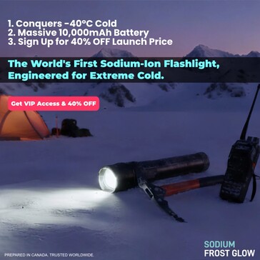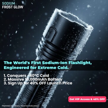 Lithium batteries perform best above freezing, since their voltage drops much faster at very low temperatures, which drastically reduces their runtime. A new flashlight is designed to solve this problem by using a sodium-ion battery. This battery is supposed to retain 88% of its usual runtime at -40°C, compared to just 15% with a lithium battery.