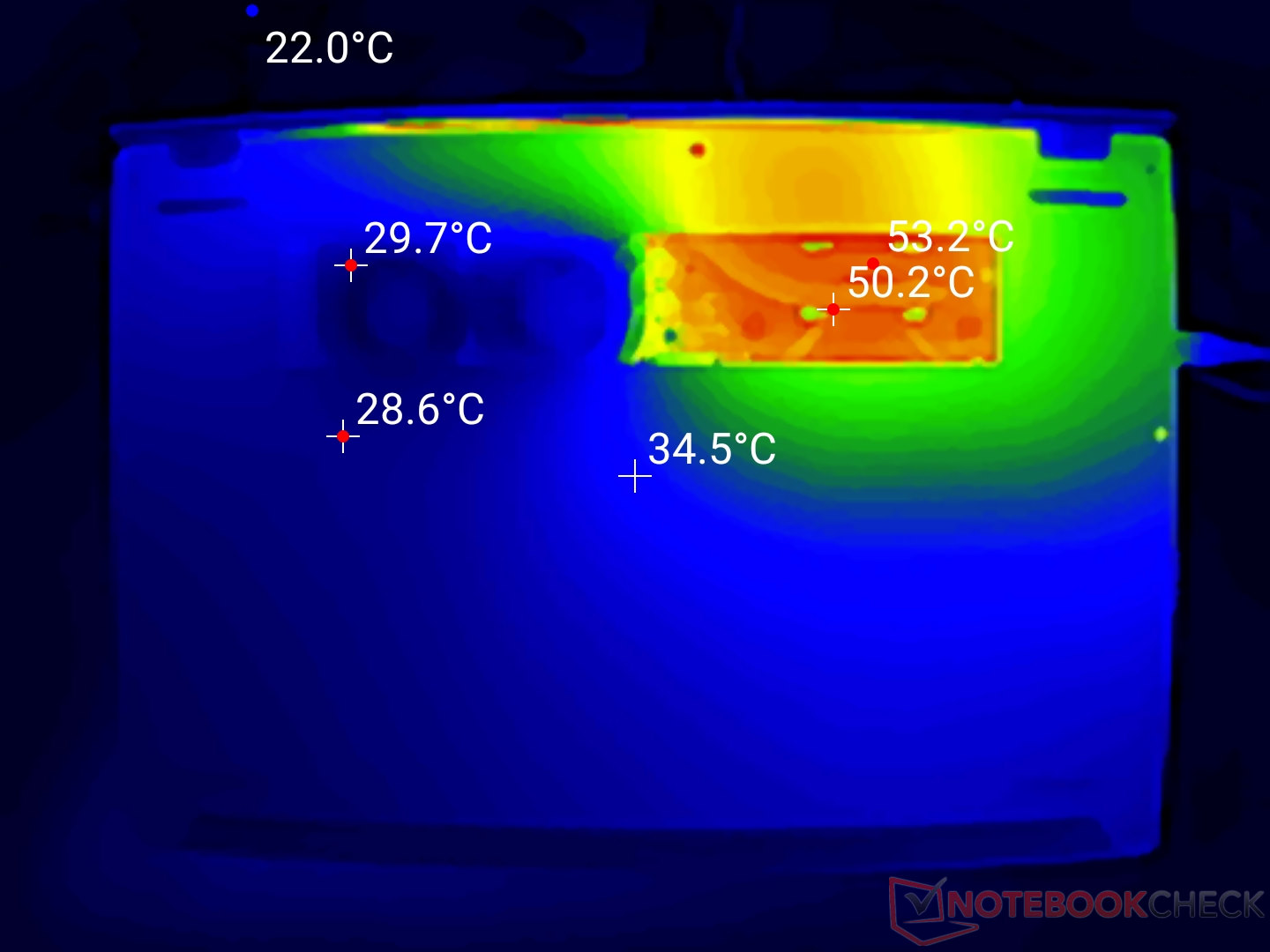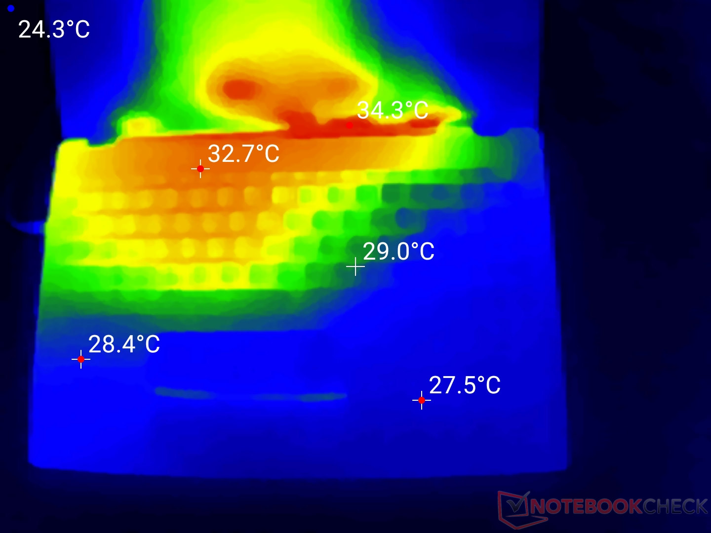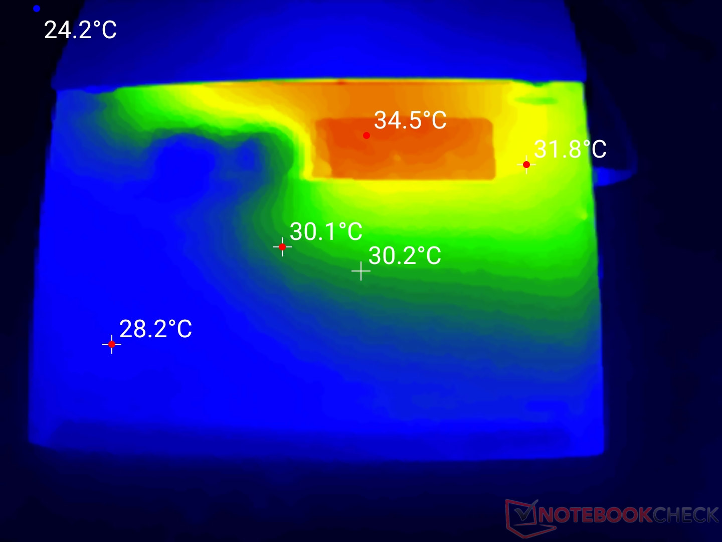 (+) The palmrests and touchpad are cooler than skin temperature with a maximum of 27 °C / 80.6 F and are therefore cool to the touch.