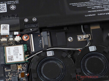The device is EPEAT registered and provides solid transparency regarding its environmental impact through the provision of a PCF document (Product Carbon Footprint). The fact that it is easy to access and clean is a plus. The case is removable, the SSDs and WLAN modules are swappable, and there's a second M.2 SSD slot hidden under the flat cable that connects to the sub-board.