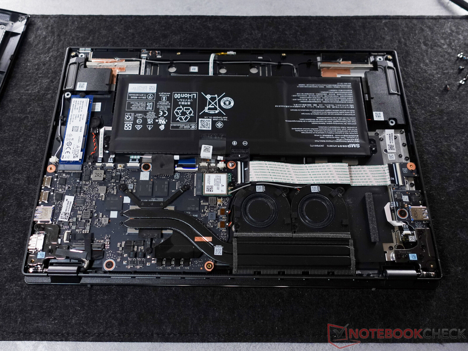 The battery has a capacity of 75 Wh and is average for a laptop of this size. With practical web surfing on WiFi, it lasts around 16 hours. This should be more than enough for a workday without worrying about carrying a power supply.