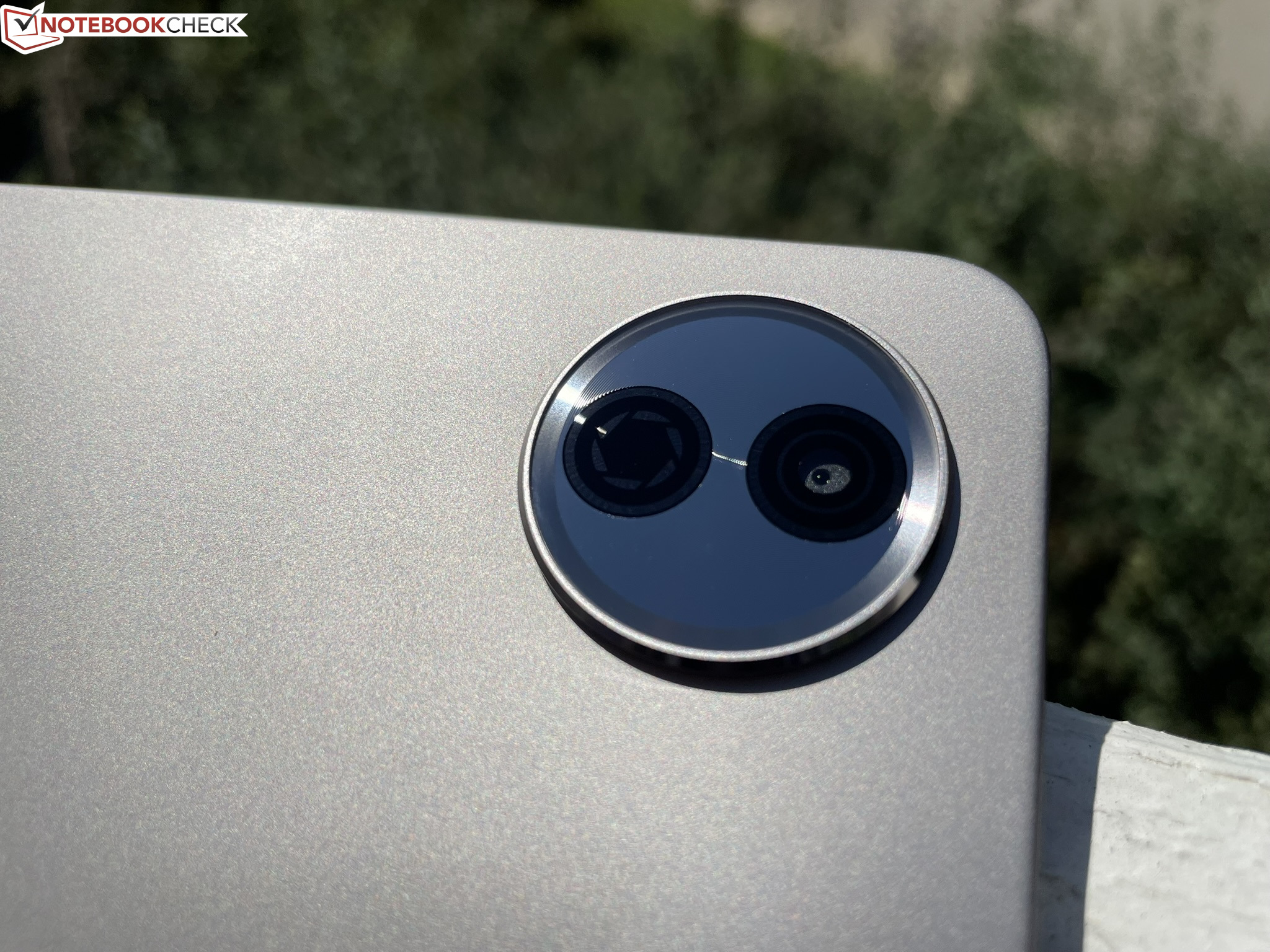 The 8 MP main camera sits in a circular bezel that protrudes a few millimeters from the chassis, which means that the tablet only tilts minimally when it is placed on the table.