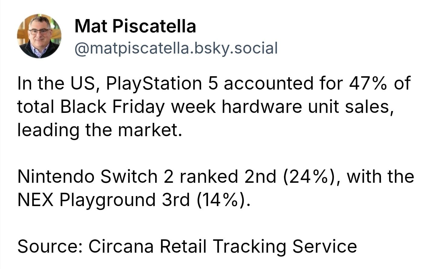 It appears that Sony’s strategy of reducing the price of PlayStation 5 consoles worked quite well, as the PS5 was reportedly the best-selling gaming console in the US during Black Friday 2025. According to data collected by Circana, the Sony PS5 accounted for 47% of the total gaming console volume moved during Black Friday 2025. The Nintendo Switch 2 was the second-best-selling console at 24%.