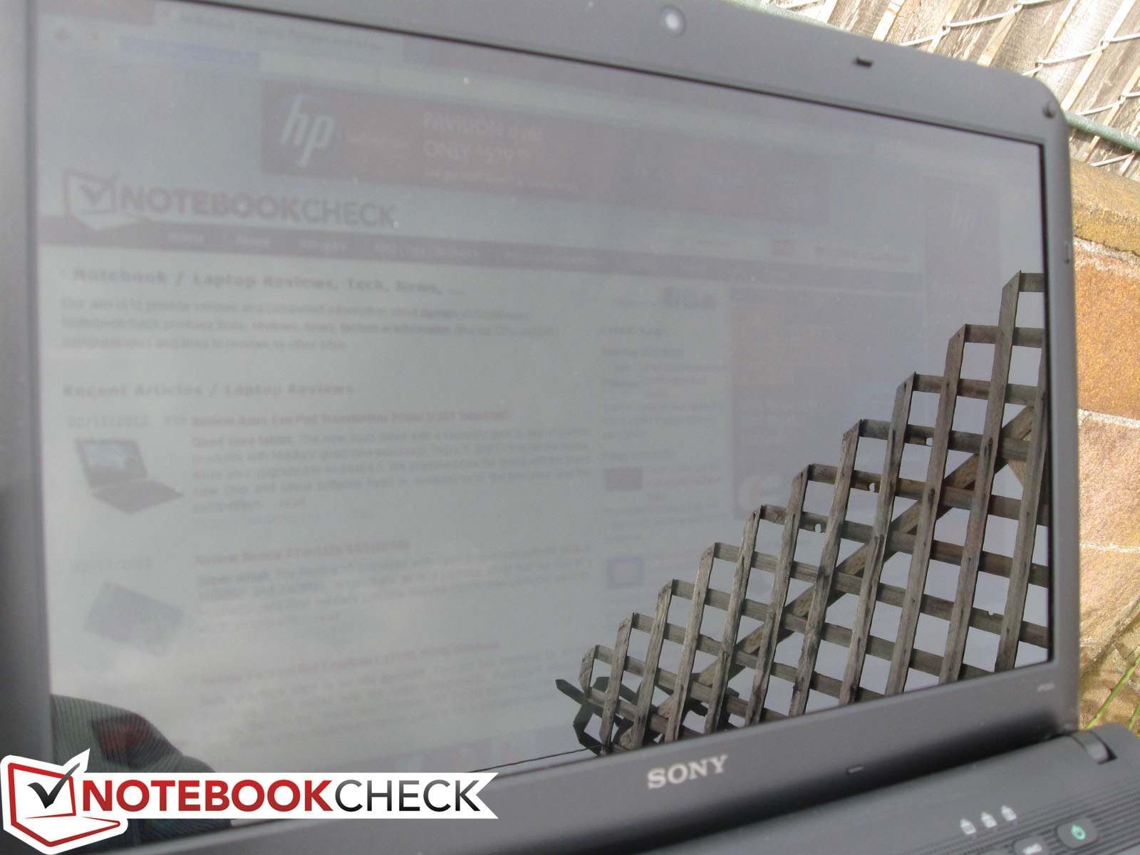 The glossy LED-backlit 14.0-inch display of the Vaio E provides a native resolution of 1366x768 pixels, which is typical of entry to mid-range offerings in this screen size. Other 14-inch or 13.3-inch notebooks may offer higher resolutions at 1440x900 or even 1600x900 pixels such as the 2011 MacBook Air and HP EliteBook 8460p, but at much higher prices. Consequently, we were satisfied with the available screen estate, at least for everyday browsing or typing. Subjectively, text and photos appear clearly on the display with no major disapprovals.