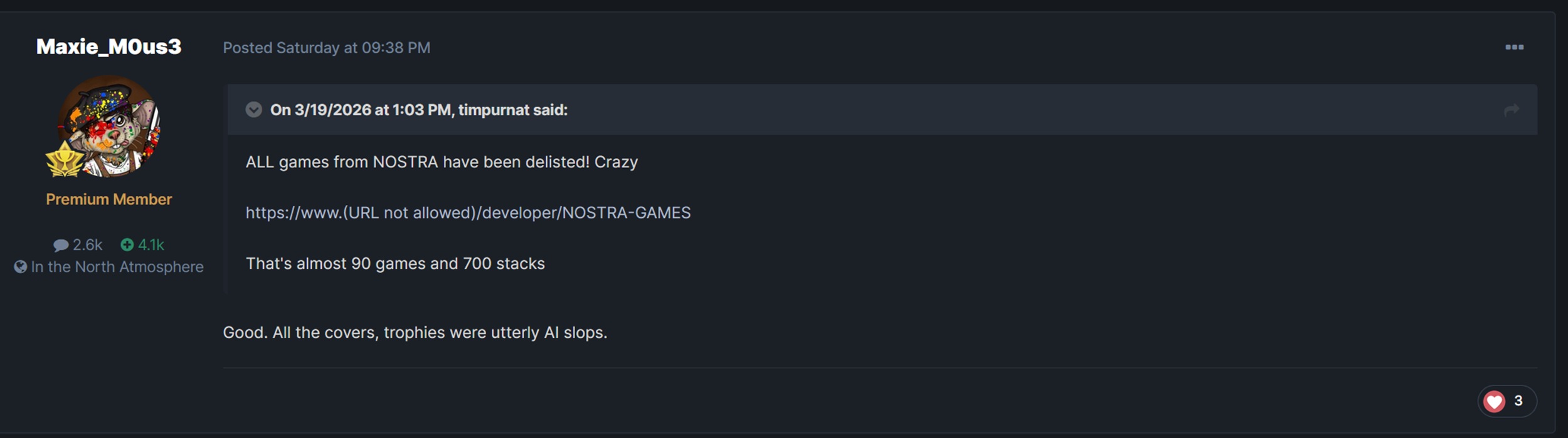 After removing nearly 1200 targets in January, Sony has purged more PS4 and PS5 games from the PlayStation Store. This time, Nostra Games was the victim, with around 90 shovelware titles delisted. Once again, Sony gave no explanation, but many of the projects relied on generative AI tools.