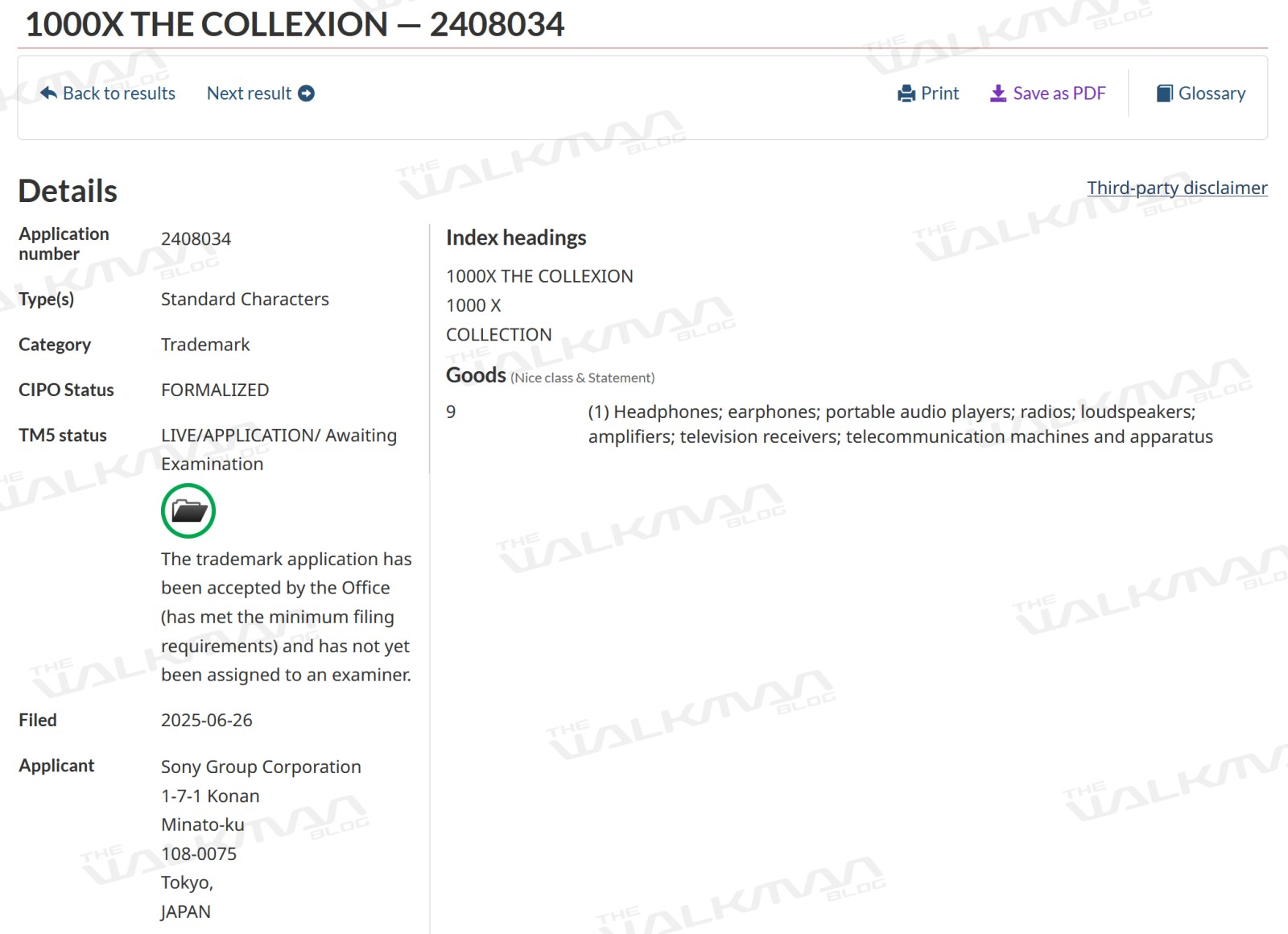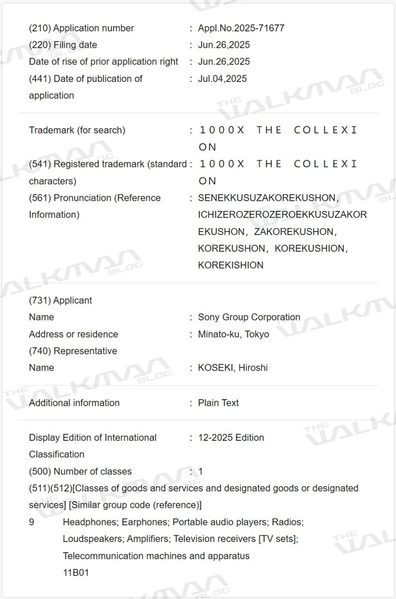 As the screenshots below show, the company has sought to trademark '1000X The Collexion' and '1000X The Collection' with the Canadian Intellectual Property Office. Moreover, a similar patent was filed with the Japan Patent Office. Based on the information contained below, 1000X The Collection encompasses headphones and earbuds, among other audio-related equipment.